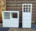 Komplet IKEA Kallax - regał 2x2 + regał 3x1 + akcesoria (szuflady, wkład na butelki i półki). Meble świetnie sprawdzą ...